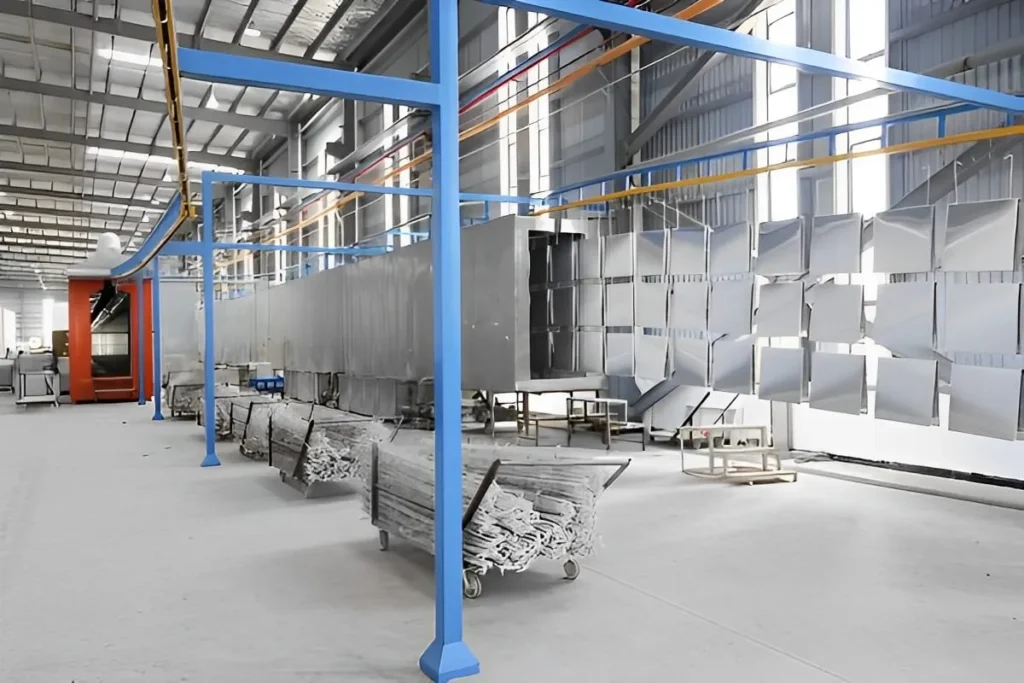 Baking and Curina The coated workpiece then enters the bakina and curincchamber.in the high temperature environment, the resin and curing agent in thepowder coating react chemically to form a strong, durable coating.This process notonly fixes the coating, but also gives it excellent corrosion and weathering resistance