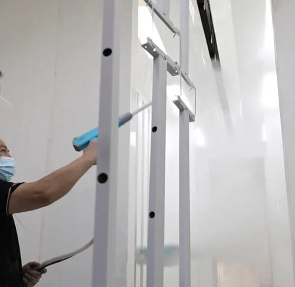Moisture drying After the pre-treatment step is completed, some moistureand possible tiny partices will remain on the surface ofthe workpiece. The principleof moisture drying is to evaporate the moisture on the surface of the workpiece byheating to ensure that the surface of the workpiece is dry before it enters the powdecoating process,so that the powder coating can be evenly adhered.
